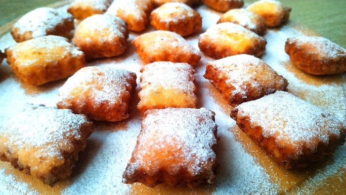 Обжарить с двух сторон на сковороде с достаточным количеством растительного масла. Остудить. Посыпать сахарной пудрой.