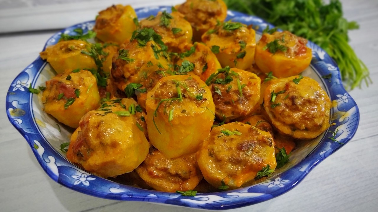 Вкусная, сытная и красивая картошечка в духовке, фаршированная фаршем. Вам обязательно стоит это приготовить для своей семьи. Обязательно, полейте соусом, перед подачей, в котором она запекалась.
