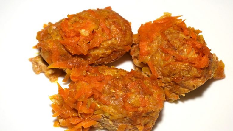 4. Фарш порционно выкладываю на противень и с помощью ложки придаю форму голубцов. Отправляю в духовку разогретую до 180 градусов на 20 минут.