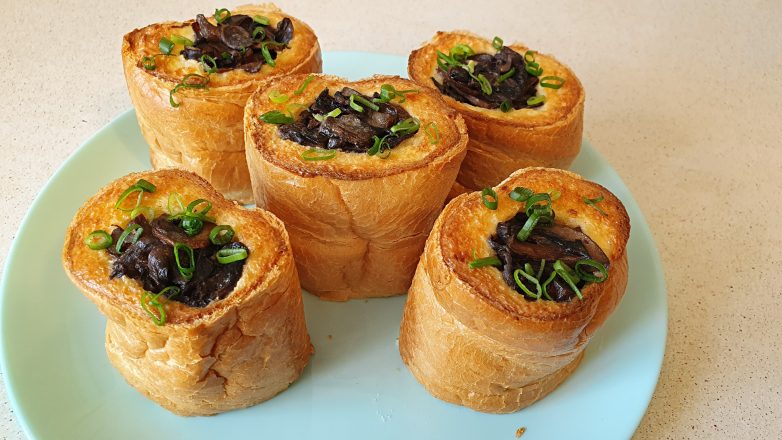Выпекать в разогретой до 180 гр духовке 15-20 минут, до золотистого цвета. Готовые пенечки украсить зеленью или зеленым луком.