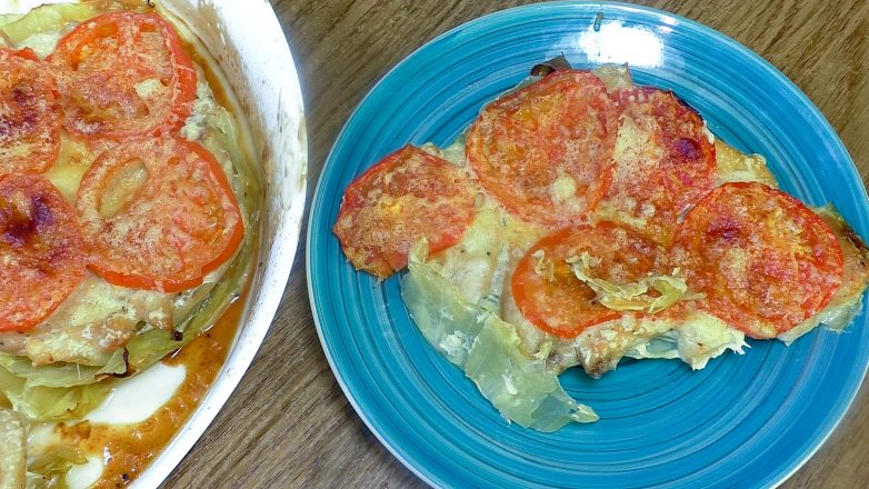 Простой рецепт в духовке который не займет много времени. Главное что бы в холодильнике была половинка куриного филе и молодая капуста. Нарезал, собрал и в духовку!