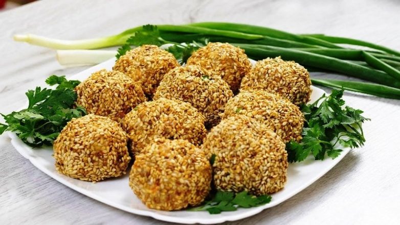 Из массы сформировать небольшие шарики и обвалять в кунжутных зёрнах.