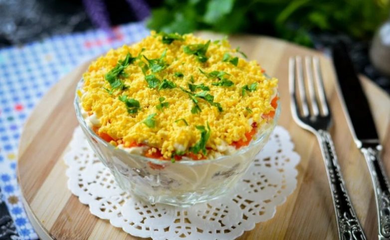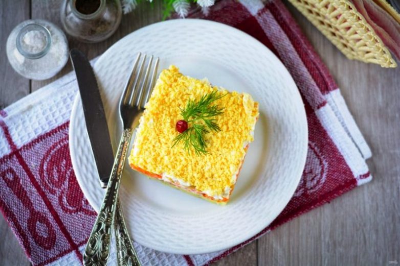 4. Салат «Мимоза» с сырой морковью