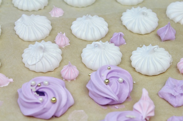 Меренгу можно окрасить в любые цвета. Я использую водорастворимые красители.
