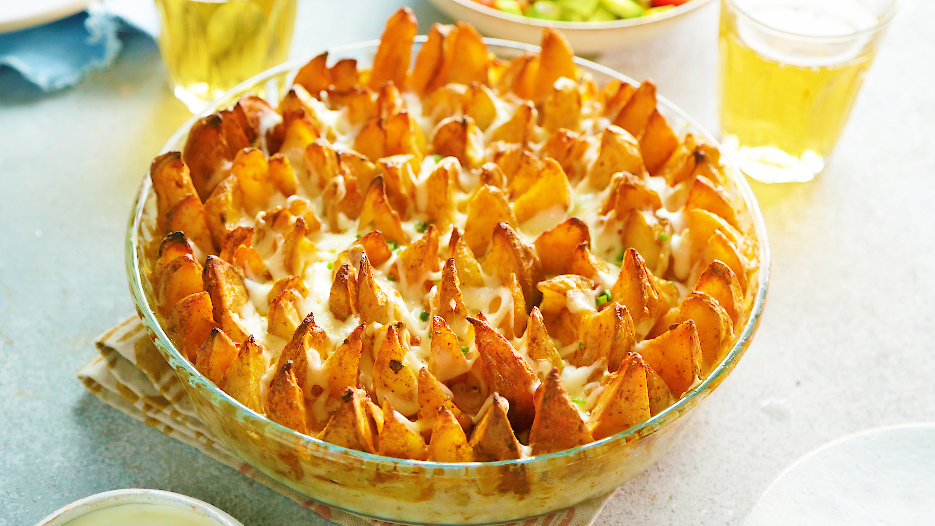 Вкуснейшая картошка запеченная в духовке под сырно-сливочным соусом. Картофельные дольки с хрустящей корочкой с тянущимся сыром. Это просто БОМБА! Все хором просят добавку. Обязательно попробуйте!