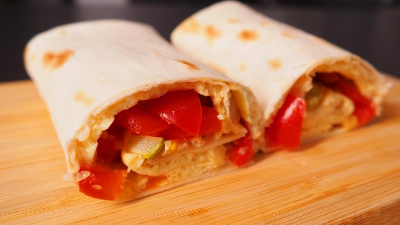 Быстрый и вкусный вариант завтрака. Лаваш с начинкой заворачивается в рулет, который будет удобно есть руками. Овощи делают начинку очень сочной, поэтому можно обойтись без соусов. Готовка не займет много времени, а результат вам точно понравится)