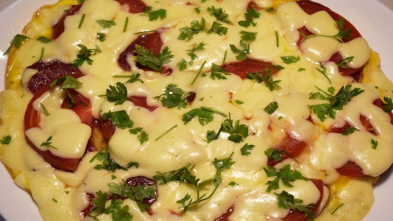 Утром, пицца и быстро не может быть? Все может если вы приготовите омлетную пиццу. Куриные яйца, сыр, колбаса и помидоры сытный завтрак для всей семьи.