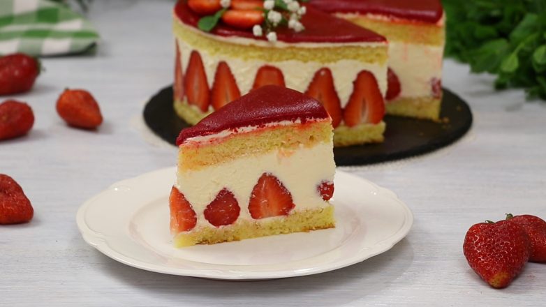 Нарезать на порционные кусочки и насладиться, невероятно вкусным и нежным клубничным десертом. Торт «Фрезье» готов. Приятного аппетита и удачной вам приготовления!