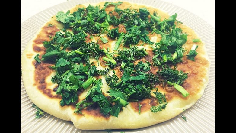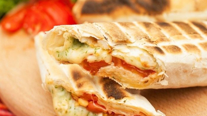 Лаваш с сыром сулугуни, помидорами и зеленью на сковороде