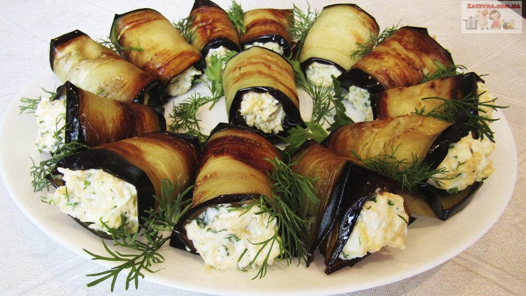Рулетики из баклажанов с яйцом и сыром