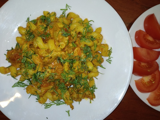 Существуем много рецептов пасты. Я хочу предложить свой вариант вкусного сытного обеда или ужина для всей семьи. Это паста со свининой на шкварках со специями в сметанно-томатном соусе.