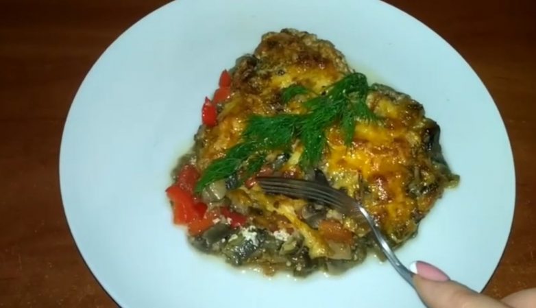 Запеканка с баклажанами и грибами