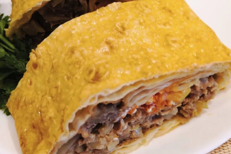 Фарш в лаваше с сыром, запечённый в духовке