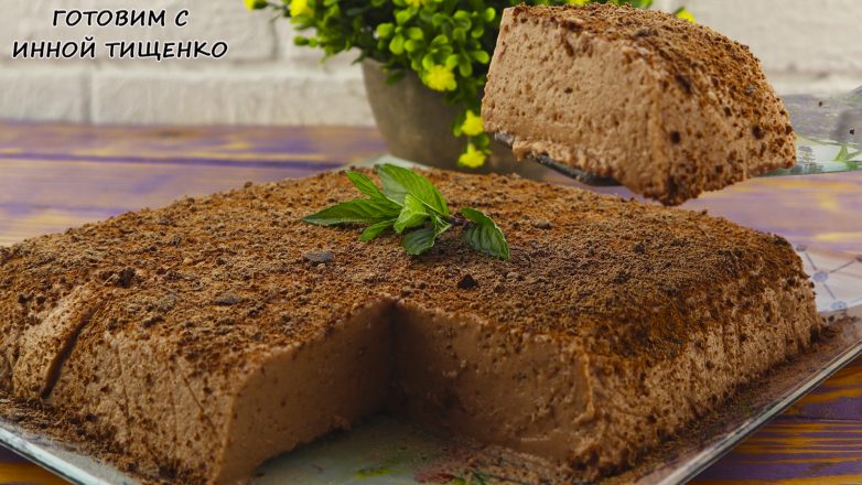 5. Затем застывший десерт, достаём из формы, украшаем натертым шоколадом, нарезаем на порционные кусочки и подаём на стол. Приятного аппетита!