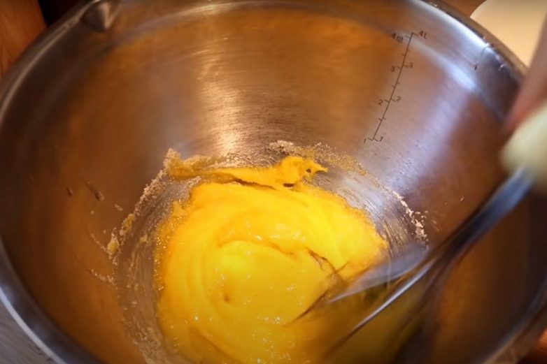 Отдели белки от желтков. Смешай венчиком желтки и сахар.