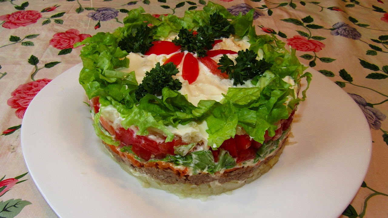Люблю рыбные салаты, больше всего с тунцом. Этот слоеный салат с тунцом очень питательный, вполне способен заменить основное блюдо.