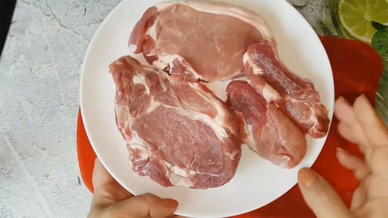Из мяса отлично подойдут стейки. Нарежь их крупными кусками, чтобы они были толщиной примерно в сантиметр — их нужно будет обжарить примерно по пять минут с каждой стороны. Можно немножко присолить и добавить капельку перца.