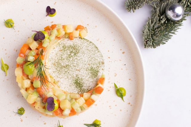Оливье с форелью