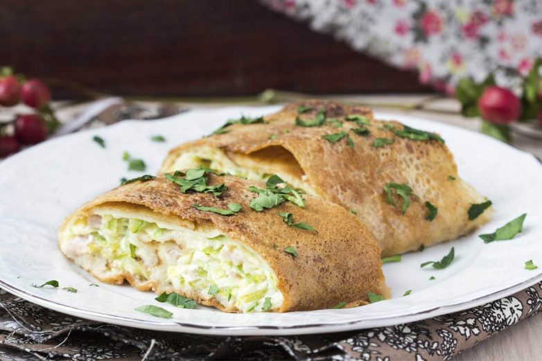 Главная прелесть этой закуски — можно сделать ее с любой начинкой. Можно пожарить фарш и завернуть его в блины. Также это может быть икра или творог. В целом, можно экспериментировать. Казалось бы, простенькая закуска из ничего, но сметается со стола вмиг. Гости довольны, а ты чувствуешь себя прекрасной хозяйкой, не особо умаявшись.
