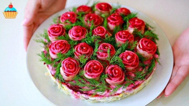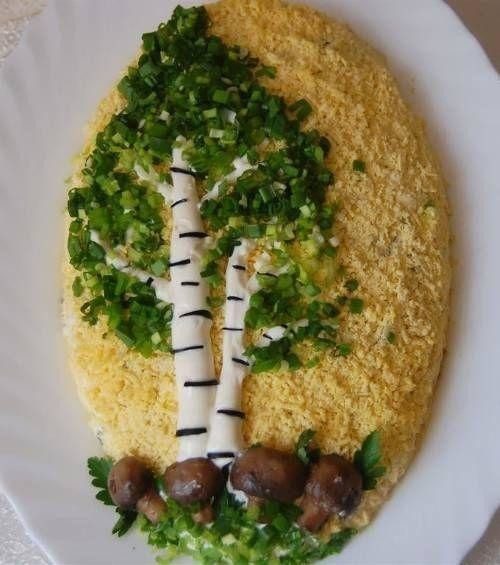 Примеры необычного оформления салатов, которые украсят собой праздничный стол