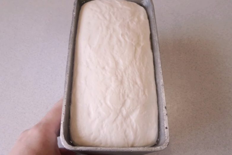 Смажь прямоугольную форму для хлеба растительным маслом и выложи в нее тесто.Оставь его на 40 минут для расстойки.