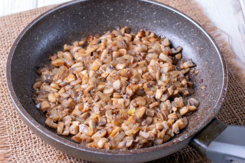 На разогретой сковороде туши грибы в собственном соку без масла, пока влага полностью не испарится.