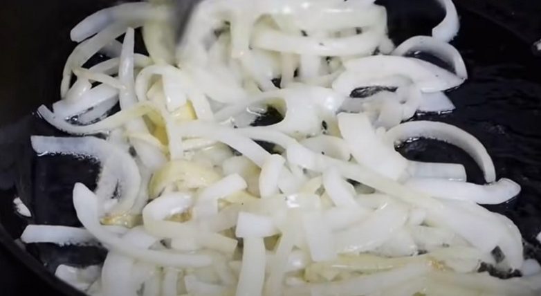 Лук пассеруй в течение 2–3 минут, затем посоли и поперчи по вкусу и пассеруй еще 1–2 минуты. Ах, какой аромат выходит! Можно добавить немного чеснока, но это необязательно.