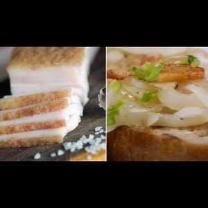 Очисти и крупно нарежь лук. Сало нарежь на тонкие полоски.