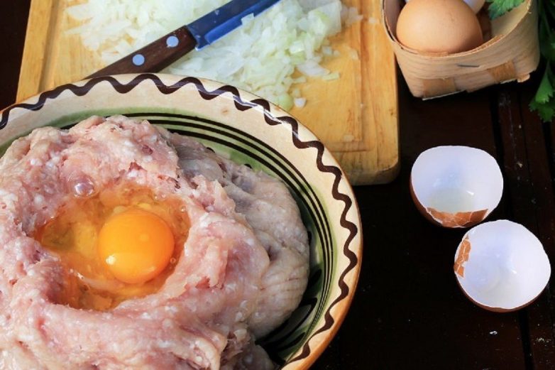 Вбей в фарш яйцо. Посоли, поперчи и хорошенько перемешай.