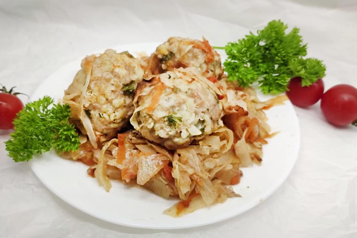 Тушеная капуста с тефтелями в рукаве