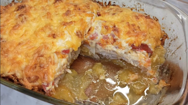 Отправляем в заранее разогретую духовку до 180 градусов на 40 минут, затем достаем форму и посыпаем оставшимся сыром (50 г).Снова отправляем в духовку на 10 -15 минут.Это позволит блюду хорошо пропитаться соками, картофель не будет сырой и не даст сгореть верхнему слою с сыром.