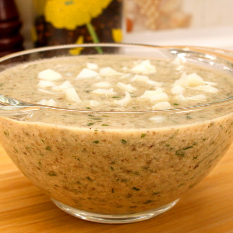 Французский грибной суп-пюре: с курицей, хлебом, яйцом и сливками