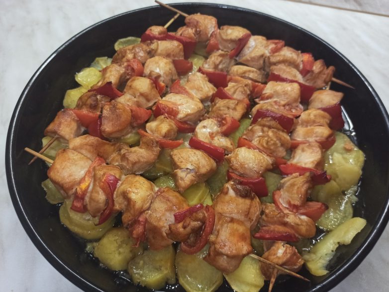 Всем привет! Предлагаю приготовить вкусный шашлык из курицы в духовке на шпажках. Шашлык по этому рецепту получается аппетитный, ароматный и очень нежный. Шашлычки с картошкой станут ярким украшением праздничного стола, а так же порадуют Вас за обедом или ужином. Готовим сразу шашлык и гарнир к нему.