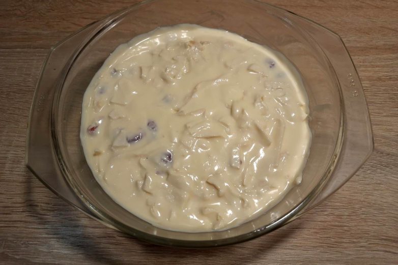 Вылей в форму. У меня стеклянная, и я предварительно смазал ее сливочным маслом.