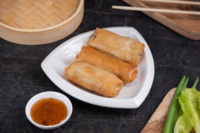 Шаг 3. Обжарить во фритюре до золотистой корочки. Подаются со сладким соусом чили.
