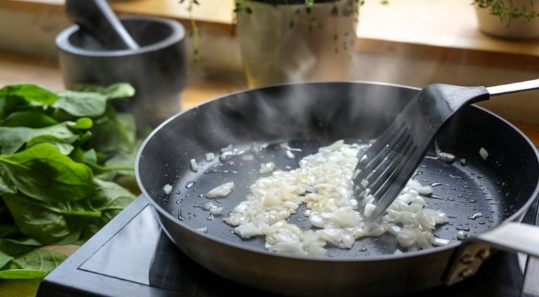Лук очисти и нарежь полукольцами. На сковороде с растительным маслом протуши лук до золотистости. Добавь соль и перец по вкусу. Сыр натри на крупной терке.