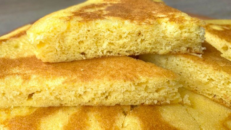 Обжариваю на разогретой сковороде с маслом под закрытой крышкой на огне чуть ниже среднего с двух сторон. С одной стороны — 2,5-3 минуты, с другой стороны — 1,5-2 минуты. Время выпекания зависит от толщины слоя теста – чем тоньше тесто — тем быстрее лепешки пекутся, но они получаются менее пышными и наоборот, чем толще слой теста, тем дольше пекутся и получаются более пышными, а также от толщины дна сковородки и самой плиты, которая также выпекает по-разному.
