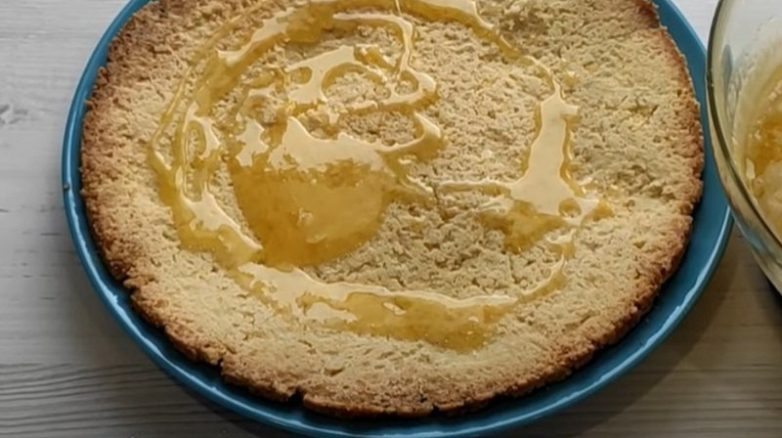 Тесто раздели на две части. Первую часть выложить в форму, не формируя бортики. Выпекай в заранее разогретой до 180 градусов духовке в течение 20–25 минут, пока края не станут золотистыми. Важно не передержать корж, иначе он станет жестким. Так же поступай и со вторым коржом.