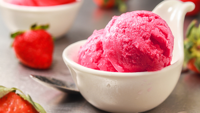 Домашнее мороженое — клубничный сорбет — райское наслаждение! Готовится проще простого, очень легко и быстро. Запасайтесь клубникой и готовьте сразу лучше тройную порцию.