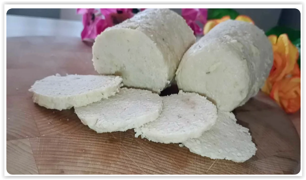 Домашняя колбаса из курицы и молока в стакане