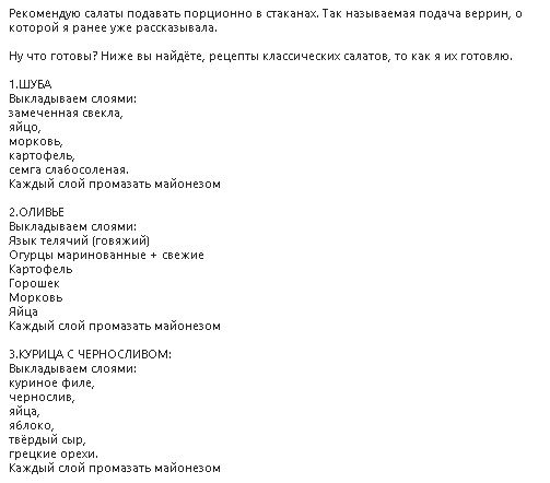 На просторах сети можно найти много вариантов готовки этих салатов. Ты можешь менять ингредиенты и корректировать рецептуру на свой вкус. Дай волю фантазии.