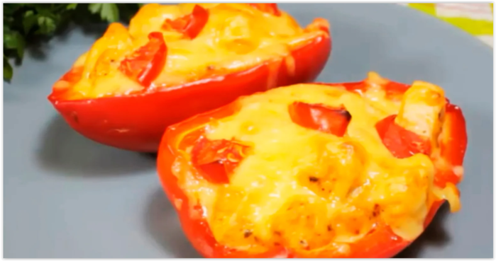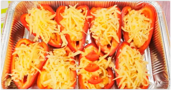 5. Посыпаем перчики сверху сыром, можно также положить сверху помидорчики.