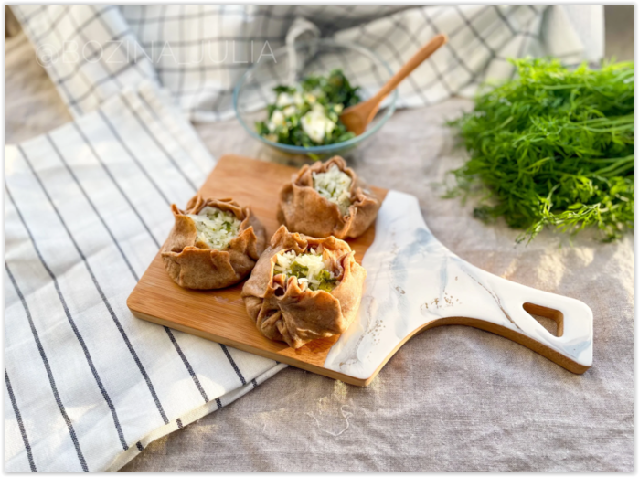 Накрываем пирожки полотенцем или пергаментом и даем им постоять примерно минут 10. Можно подавать к столу!