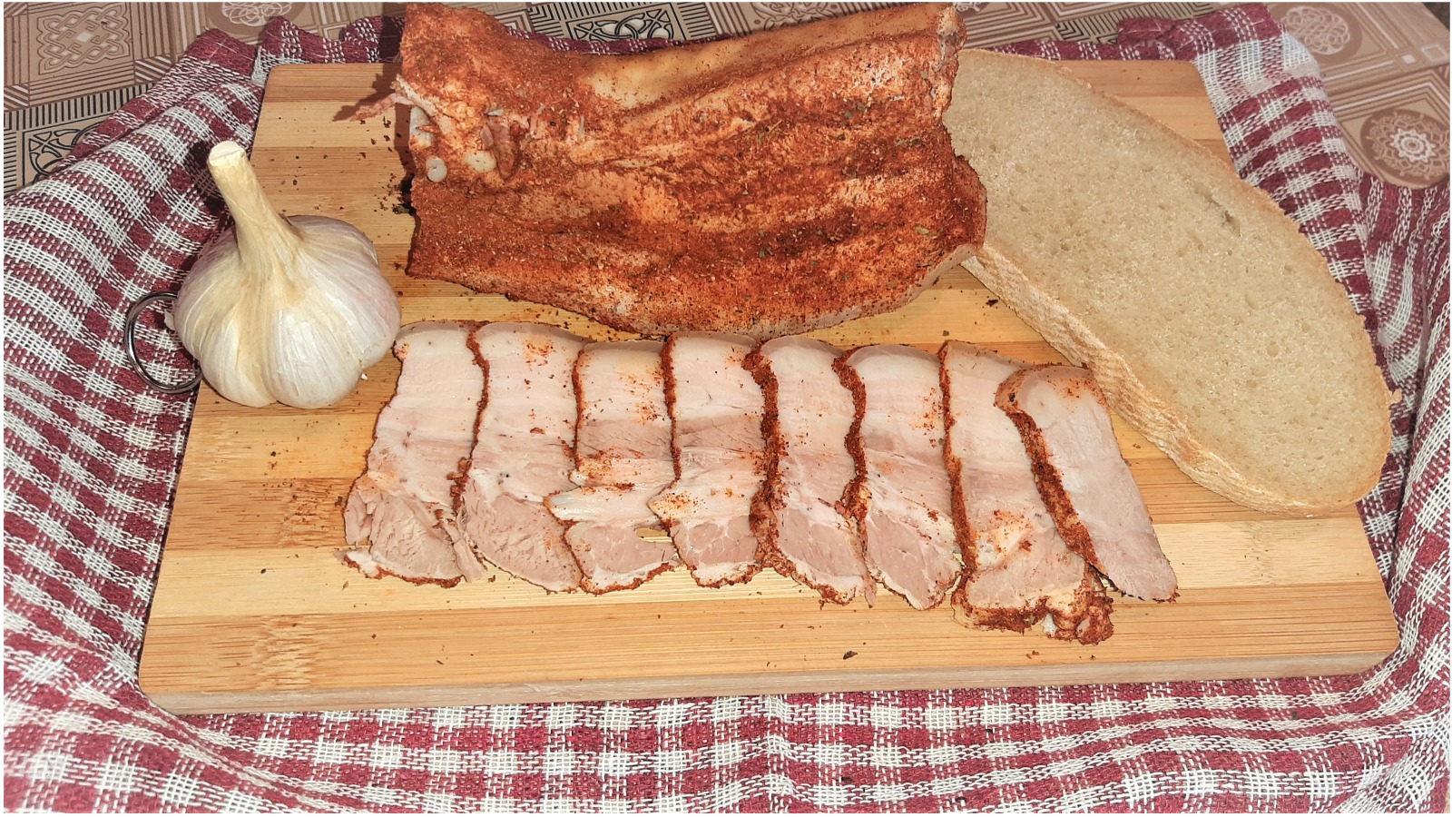 Свиная грудинка по-домашнему готова, ее можно сразу подавать к столу. Отлично хранится в холодильнике неделю. Более подробный рецепт приготовления грудинки смотрите на видео. Приятного аппетита!