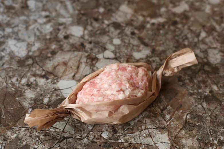 Выложите на капусту фарш, сформированный в виде котлеты.