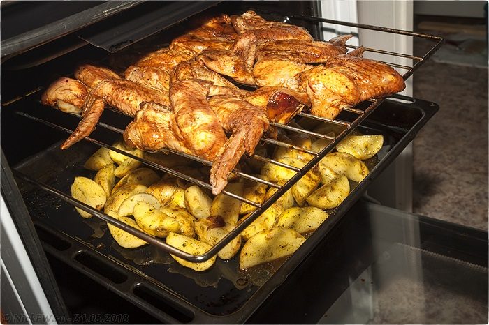 Если вы хотите готовить крылья в духовке, то никаких сложностей в процессе возникнуть не должно: на противень, предварительно смазанный растительным маслом, в один слой необходимо выложить крылья, включить духовку на 200 градусов и отправить мясо запекаться. Обычно данная процедура занимает 40-60 минут, в зависимости от того, какая у вас духовка. Ориентируйтесь по появлению румяной корочки.