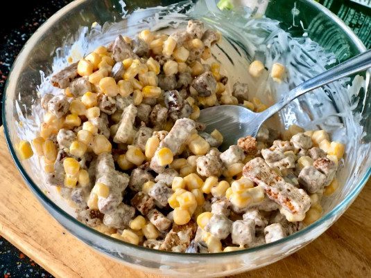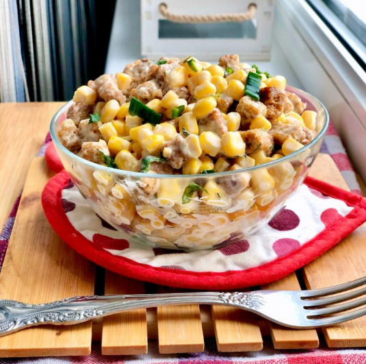 Это не салат. Это удар по пищеварению. Консервированная кукуруза с консервированными сухариками. Еще и с майонезом! Ужас тихий!