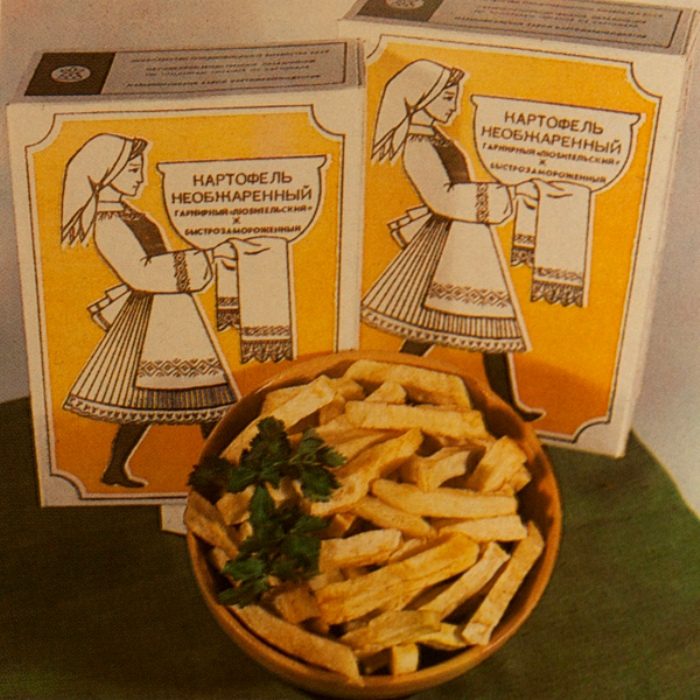 А вот о существовании этого продукта во времена СССР уже мало кто помнит. И напрасно, ведь наличие в те годы в продаже продукта под названием «гарнирный картофель быстрозамороженный» доказывало налаженную систему производства полуфабрикатов не только в виде котлет, но и овощей. Продукт фактически представлял собой советскую вариацию знаменитой картошки фри. Изготовляли его из свежих клубней, которые нарезали на одинаковые по размеру брусочки с гладкой поверхностью. Предназначение его указывалось как быстрый способ приготовления гарнира ко вторым блюдам, потому что продукт нужно было просто разогреть или обжарить в замороженном виде до готовности.