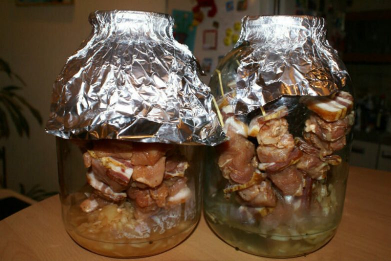 Банки объемом 0,5-0,7 л применять не рекомендуется, так как шпажки в них не помещаются. Для духовки удобнее брать 1-литровые емкости, но если объем позволяет, то можно использовать 2-3-литровые банки, в которых сразу можно приготовить достаточно шашлыков на всю семью.