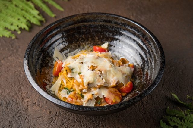 Шаг 5. Выкладываем в тарелку и посыпаем сверху тертой моцареллой.